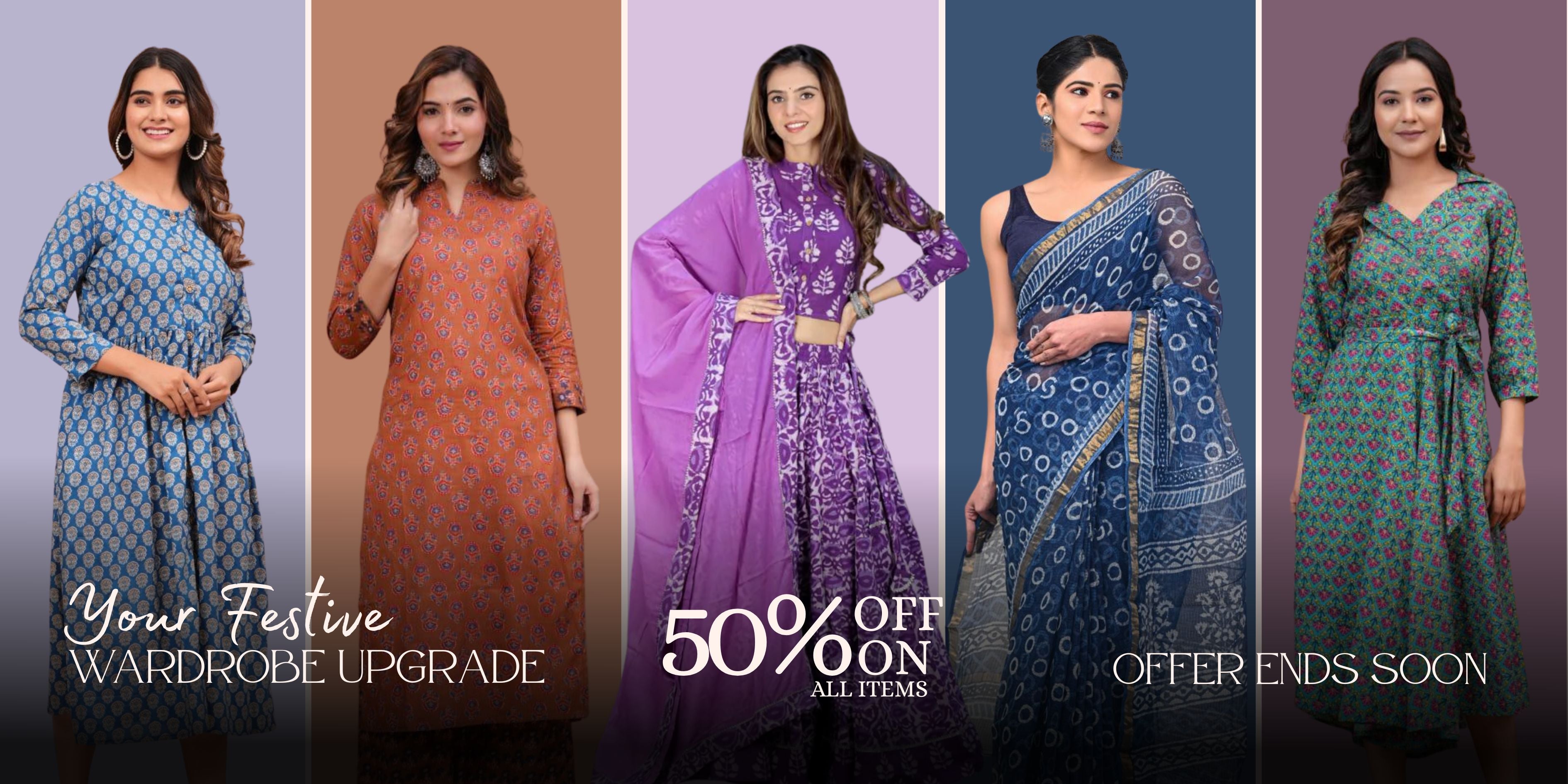 We celebrate artisan craftsmanship—using natural dyes and handcrafted wooden‑block techniques—while delivering timeless styles that seamlessly bridge modern comfort with Indian heritage.